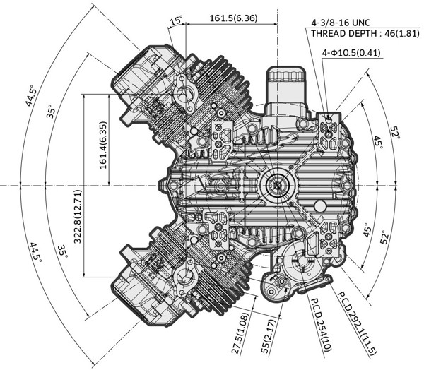 Tipo de motor 4-Stroke, Vertical Shaft, V-Twin, OHV, Air-cooled